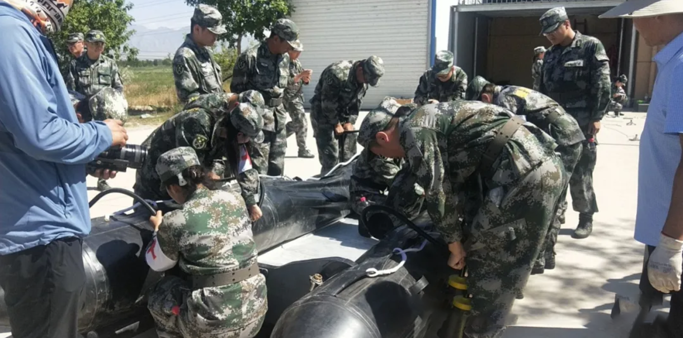 防汛抗洪演練活動中,大家一起在烈日下進行裝備的安裝,熟悉裝備的安裝流程,學習裝備的使用。