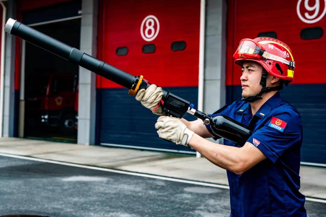 消防叔叔在展示使用的時候吸引了周邊不少小朋友,“嘭”的發(fā)射聲響和爆米花實在太像了。